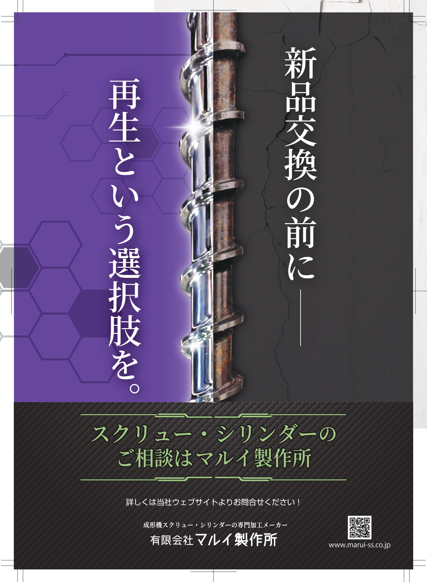スクリュー・シリンダーの再生・新規製作は 有限会社マルイ製作所へ。